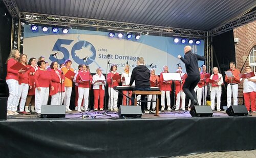 Eine Kostprobe unseres Glücks-Rezeptes geben wir am 14.06.2026 um 17 Uhr auf der LAGA in Neuss zum Besten. Es freut uns, wenn die Zuhörer mitsingen, klatschen oder Luftsprünge machen wie unser Chorleiter Roland Steinfeld.