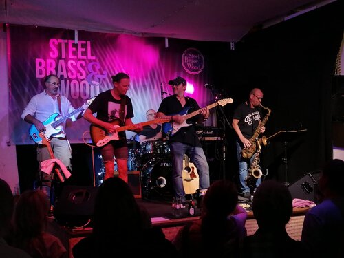 Die Band Steel, Brass & Wood spielt Covermusik vom Feinsten. Die sechs Musiker aus Grevenbroich, Neuss und Düsseldorf lassen es ordentlich krachen. Mit jahrzehntelanger Banderfahrung aus verschiedenen Stilrichtungen haben sie sich 2021 gefunden, um dem Publikum von 18 bis 80 richtig einzuheizen.